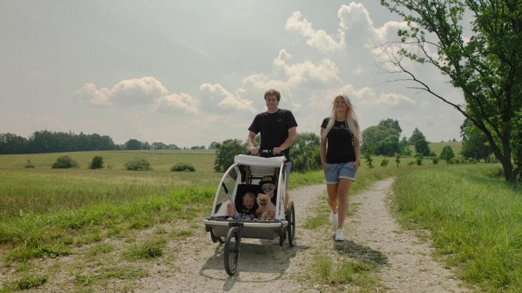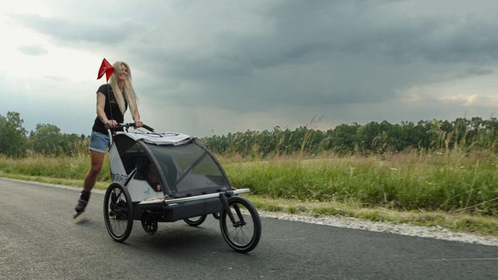 Koupí cyklovozíku nebo chcete-li vozíku za kolo řešíte potřebu podnikat rodinné společné projížďky krajinou. Mnoho výrobců v dnešní době nabízí další příslušenství, které rozšiřuje možnosti využití. Takový cyklovozík můžeme nazvat sportovním vozíkem, který díky tzv. jogger setu, tedy předního kočárkového kola o velikost zpravidla 16″, můžeme použít jak název napovídá pro jogging. Přední joggingové kolo může svádět i k použítí vozíku na in-lin bruslení. Buďte však obezřetní a přečtěte si důkladně návod k použití vámi zakoupeného vozíku. Hlavním aspektem vhodnosti či nevhodnosti použití na in-line bruslení je brzdový systém. Ten musí odpovídat bezpečnostním pravidlům včetně ergonomie a funkčnosti brzd. A právě LEGGERO ENSO je jediný vozík na trhu s certifikací i pro in-line bruslení. Brzdový systém je převzatý s běžných kol. Ergonomie brzdové páky i účinnost brzdy splňují normy pro in-line bruslení. Důležitým faktorem je také brždění zadních kol, kde je účinnost brzd mnohonásobně vyšší. V případě použití brzdy na přední joggingové kolo je účinnost omezena trakcí pláště předního kola a povrchu vozovky. Vždy je potřeba brát v potaz vlastní schopnosti při jízdě na in-line bruslých a také celkovou hmotnost vozíku a okolní podmínky.