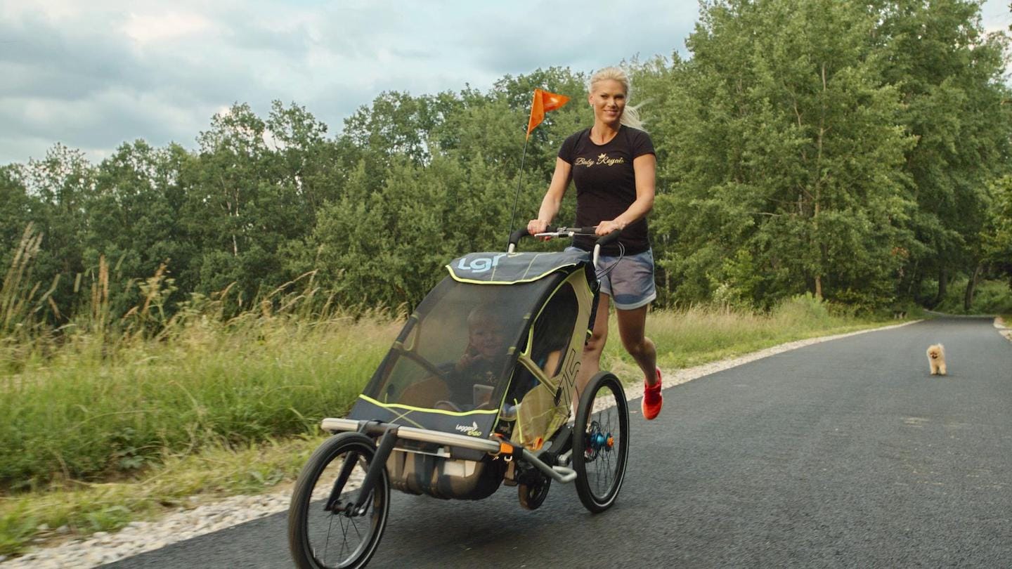 Koupí cyklovozíku nebo chcete-li vozíku za kolo řešíte potřebu podnikat rodinné společné projížďky krajinou. Mnoho výrobců v dnešní době nabízí další příslušenství, které rozšiřuje možnosti využití. Takový cyklovozík můžeme nazvat sportovním vozíkem, který díky tzv. jogger setu, tedy předního kočárkového kola o velikost zpravidla 16″, můžeme použít jak název napovídá pro jogging. Přední joggingové kolo může svádět i k použítí vozíku na in-lin bruslení. Buďte však obezřetní a přečtěte si důkladně návod k použití vámi zakoupeného vozíku. Hlavním aspektem vhodnosti či nevhodnosti použití na in-line bruslení je brzdový systém. Ten musí odpovídat bezpečnostním pravidlům včetně ergonomie a funkčnosti brzd. A právě LEGGERO ENSO je jediný vozík na trhu s certifikací i pro in-line bruslení. Brzdový systém je převzatý s běžných kol. Ergonomie brzdové páky i účinnost brzdy splňují normy pro in-line bruslení. Důležitým faktorem je také brždění zadních kol, kde je účinnost brzd mnohonásobně vyšší. V případě použití brzdy na přední joggingové kolo je účinnost omezena trakcí pláště předního kola a povrchu vozovky. Vždy je potřeba brát v potaz vlastní schopnosti při jízdě na in-line bruslých a také celkovou hmotnost vozíku a okolní podmínky.