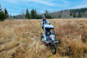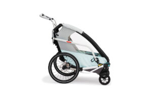 + velká výbava v ceně (opravdu funkční odpružení se zdvihem 75mm, kotoučové brzdy, kočárková kolečka, prachová síťka, pláštěnka, ergonomický sedák a mnoho dalšího)