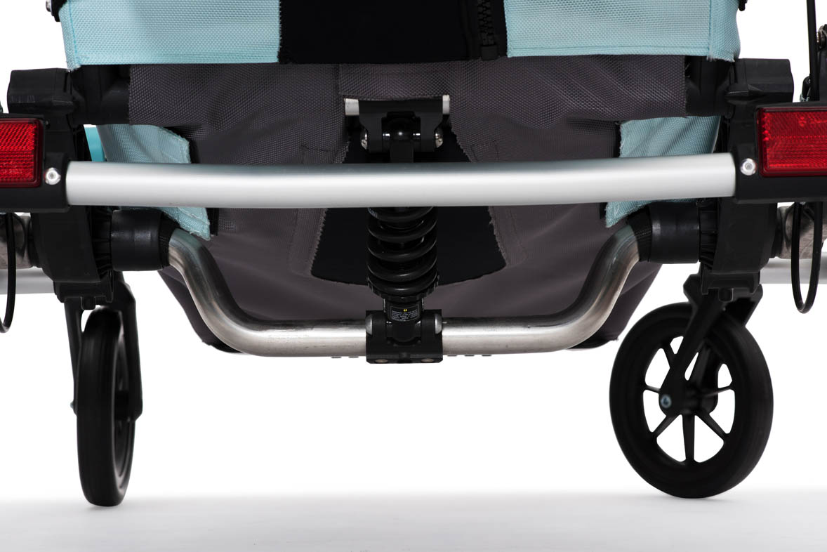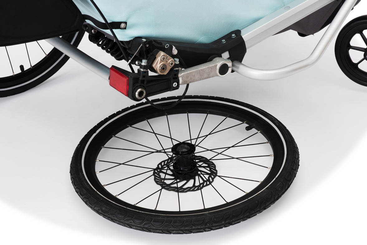 + velká výbava v ceně (opravdu funkční odpružení se zdvihem 75mm, kotoučové brzdy, kočárková kolečka, prachová síťka, pláštěnka, ergonomický sedák a mnoho dalšího)